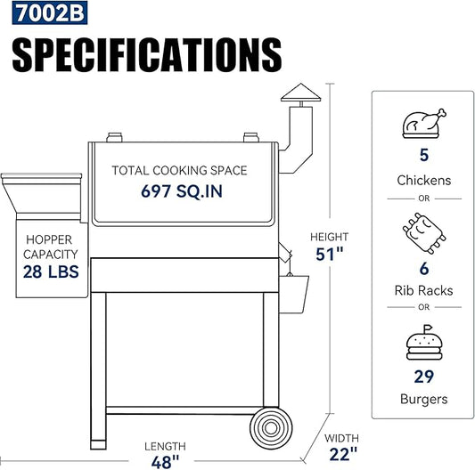 Z GRILLS 7052B Wood Pellet Grill and Smoker with WIFI Smart Home Technology, PID Controller, 709 sq. in, Black