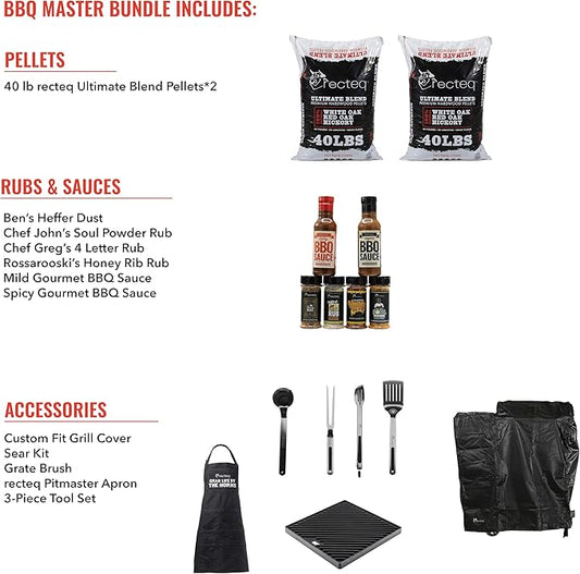 recteq Pellet Grill - Road Warrior 340 + BBQ Master Bundle, Portable Electric Pellet Smoker Grill, BBQ, Wood Pellets, Sear, Smoke, and More