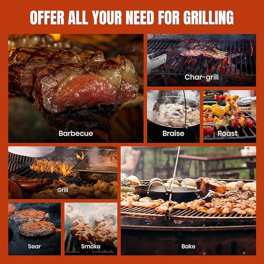 Charcoal Grills - 40 lbs Stainless Steel Smoker Grill 3-in-1 for Cooking & Home BBQ - Portable Vertical Smoker Barrel for Outdoor Grilling & Camping - Meat Grill with Thermometer & Accessories