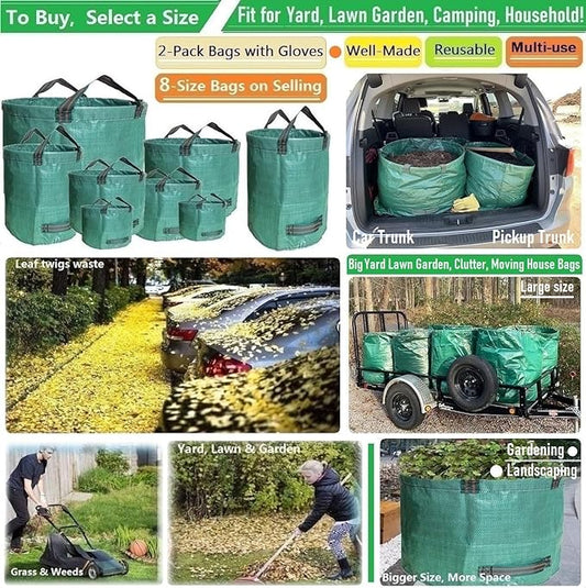 Professional 2-Pack 137 Gallon Lawn Garden Bags Large (D34, H34 inch) Yard Waste Bags with Gardening Gloves, Big Leaf Bag,Yard Debris,Waste Container,Lawn Trash,Grass Clippings Bag,Weed Bags 4 Handles