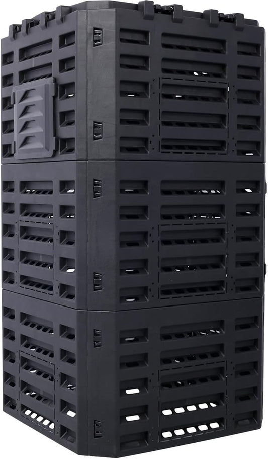 Outsunny Garden Compost Bin 80 Gallon Outdoor Large Capacity Composter Fast Create Fertile Soil Aerating Box, Easy Assembly, Black