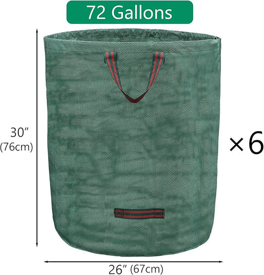 6 Pack 72 Gallons Reusable Garden Waste Bags with Coated Gloves, Heavy Duty Leaf Bags 4 Handles Lawn Yard Bags for Loading Leaf,Trash,Yard Waste Bags (H30" X D26")