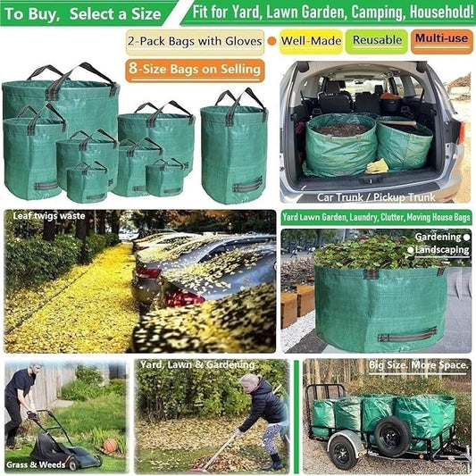 Professional 2-Pack 63 Gallons Lawn Garden Bags Yard Waste Bag (D31, H19 inches) with Gardening Gloves,Standable,Reusable Leaf Grass Bag,Garden Trash Containers,Lawn Yard Waste Bags with 4 Handles