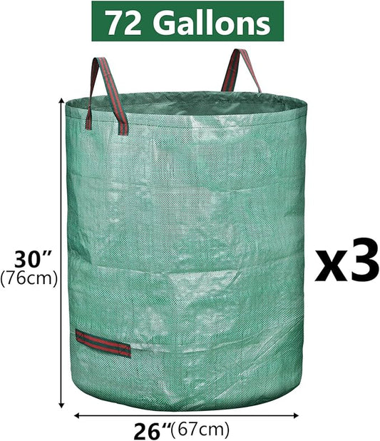 Reusable Yard Waste Bags, 72 Gallons Leaf Bags with Reinforced Handles,Heavy Duty Garden Waste Bag,Collapsible Trash Bag for Lawn Debris Leaves Grass Clippings(3 Packs)