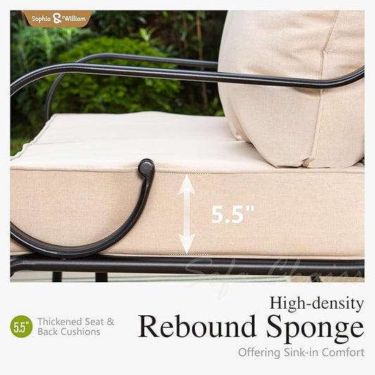 Sophia & William 4 Piece Patio Furniture Set Outdoor Couch Sofa, Patio Conversation Sets 5 Seat Clearance with 3-seat Sofa x 1, Swivel Chair x 2, Metal Coffee Table x 1 for Front Porch Lawn, Beige