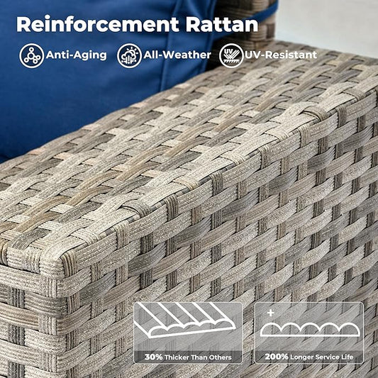 ovios 6 Pieces Patio Furniture Set, Outdoor Wicker Sectional Sofa with Glass Table Comfy Cushions, Modern Modular Deep Seat Couch Rattan Conversation Set, Navy Blue