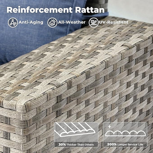 Joyside Patio Furniture Set 6 Pieces - Outdoor Rattan Furniture Set with 2 Armchairs, 2 Couch and 2 Ottomans, Olefin Cushions Included(Mixed Grey/Blue)