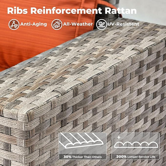 ovios 6 Pieces Patio Furniture Set, Outdoor Wicker Sectional Sofa with Glass Table Comfy Cushions, Modern Modular Deep Seat Couch Rattan Conversation Set, Orange Red