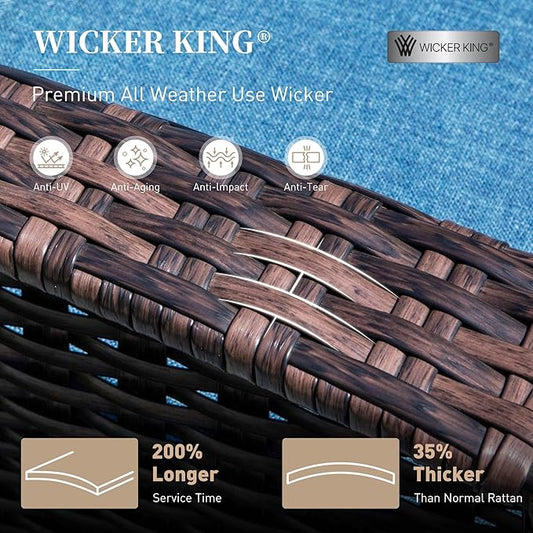 6 Pieces Patio Furniture Set with Swivel Chairs, High Back Wicker Rattan Sofa with Extra Thick Cushion and Coffee Table, Outdoor Conversation Set for Garden Backyard Deck, Blue
