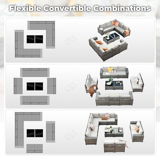 ovios 12 Pieces Patio Furniture Set, Outdoor Wicker Sectional Sofa with Glass Table Comfy Cushions, Modern Modular Deep Seat Couch Rattan Conversation Set, Beige