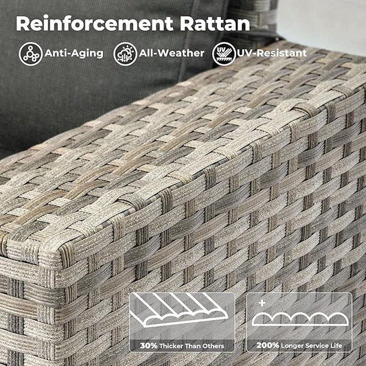 Sophia & William Patio Furniture Set, 5 Piece Metal Outdoor Conversation Set with 3-Seater Outdoor Couch, 2 Sofa Chairs, 1 Loveseat,1 Coffee Table for Outdoor Seating, Backyard, Porch(Grey)