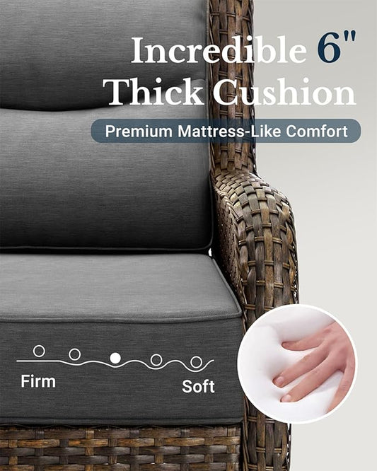 HILLGA Luxury High Back Patio Furniture Set with 6-Inch Thick Cushion, 5-Piece Outdoor Conversation Set with Loveseat, Swivel Rocker Chairs & Ottomans, Ideal for Porch Pool Deck Yard (Dark Grey)