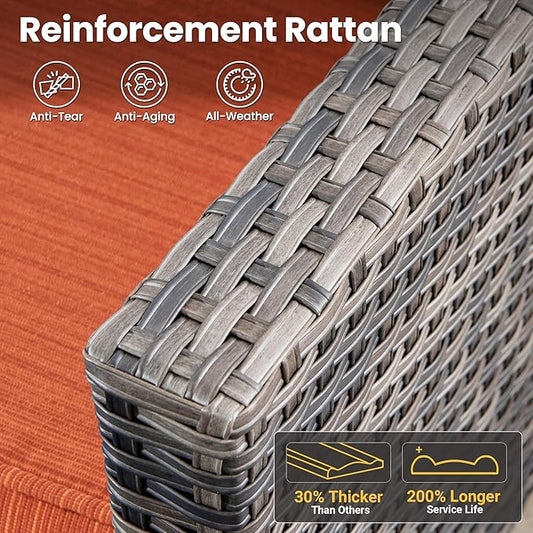 ovios Patio Furniture Set, 5 Pieces Outdoor Wicker Sofa Couch with Chairs, Ottomans and Comfy Cushions, All Weather High Back Rattan Conversation Set, Orange Red