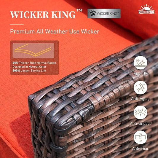 ovios Patio Furniture Set, 7 Pieces Outdoor Wicker Sofa Couch with 4 Chairs, Ottomans and Comfy Cushions, All Weather High Back Rattan Conversation Set, Orange Red