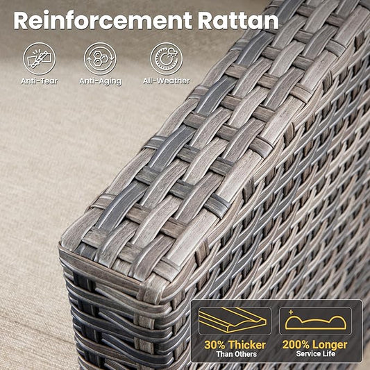 Patio Furniture Set of 2, Rattan Wicker Swivel Chairs with 5.5" Thick Cushions and 35" High Back, Oversized Outside Chairs for Balcony Porch Deck, Grey