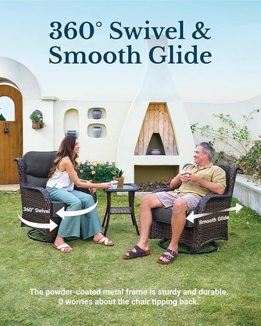 HILLGA Luxury High Back Patio Furniture Set with 6-Inch Thick Cushion, 5-Piece Outdoor Conversation Set with Sofa, Swivel Rocker Chairs & Ottomans, Ideal for Porch Pool Deck Yard (Dark Grey)