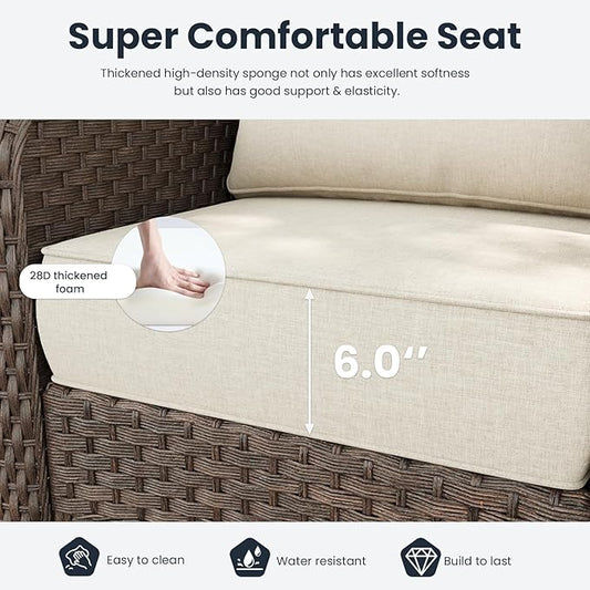 Patio Furniture Set 6 pcs, Outdoor Patio Furniture, 1 X 3-Seat Sofa, 2 X Single Chairs, 2 X Rocker Chairs, 1 X Coffee Table and 5.75" Extra Thick Cushion, Patio Conversation Set,Beige