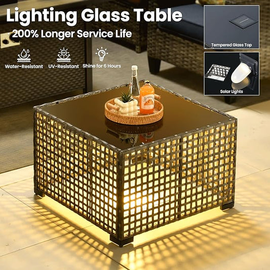 ovios 6 Pieces Patio Furniture Set Outdoor Sofa Couch with Solar Lights Table Comfy Cushions, Modern Deep Seat Wicker Rattan Conversation Set for Porch Deck, Beige