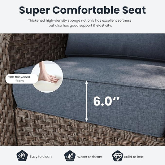 Patio Furniture Set 6 pcs, Outdoor Patio Furniture, 3-Seat Sofa, 2 Swivel Chairs, 2 Ottomans, Coffee Table and 5.75" Extra Thick Cushion, Conversation Set for Backyard Deck, Navy Blue