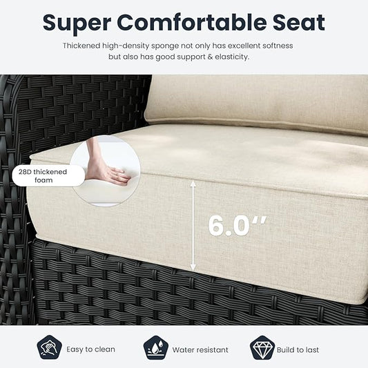 Patio Furniture Set 6 pcs, Outdoor Patio Furniture, 3-Seat Sofa, 4 X Single Chairs, 1 X Coffee Table and 5.75" Extra Thick Cushion, Patio Conversation Set,Beige