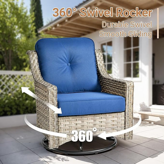 HOOOWOOO Outdoor Patio Bistro Set,3 Pieces Wicker Out Door Swivel Rocking Chair with Matching Side Table,Patio Furniture Sets,Blue