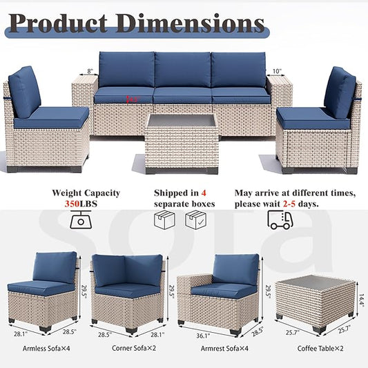 12 Pieces Patio Furniture Set, Outdoor Sectional Wicker Sofa with Thickened Cushions and Coffee Table, High Back Rattan Patio Conversation Sets for Garden Backyard, Navy