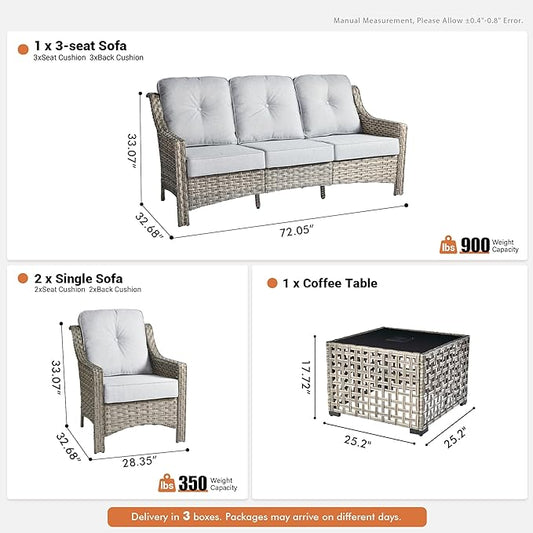 4 Pieces Patio Outdoor Furniture Set,All Weather Wicker Rattan Patio Seating Sofa and Chair Set w/ 3-Seater Sofa and Glowing Coffee Table,Outdoor Conversation Sets for Deck Yard Garden,Grey
