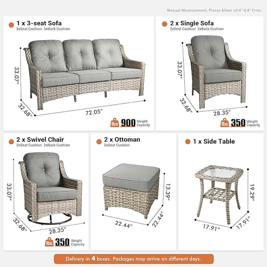 8 Pieces Patio Outdoor Furniture Set with Swivel Rocking Chairs,All Weather Wicker Rattan Patio Seating Sofa and Chair Set w/Ottoman,Outdoor Conversation Sets for Deck Yard Garden,Dark Grey