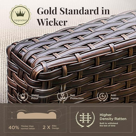 HILLGA Luxury Patio Furniture Set with 6-inch Thick Cushion, Outdoor Couch and High Back Swivel Rocker Patio Chairs, 6PCS Wicker Conversation Set for Deck Yard and Poolside, Dark Grey (V2)