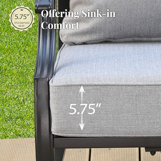 Patio Furniture Set 5 pcs, Outdoor Patio Furniture, 3-Seat Sofa, 2 Rocking Chairs, 2 Ottomans and 5.75" Extra Thick Cushion, Patio Conversation Set for Garden Backyard Deck,Grey