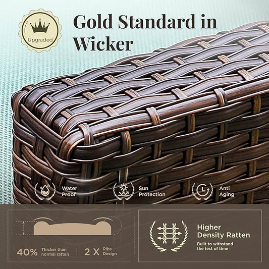 Patio Furniture Set, 7 Pcs Wicker Rattan Rattan Outdoor Conversation Set, 4 x Single Chairs, 1 x 3 Seater Sofa and 2 x Ottoman with 4" Thick Cushion for Garden Backyard Deck, Beige