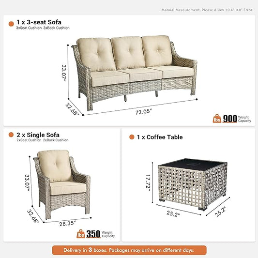 HOOOWOOO Patio Sectional Furniture Set,3 Piece Couch Set with 2 Matching Corner Chairs and 1 Table(Beige)