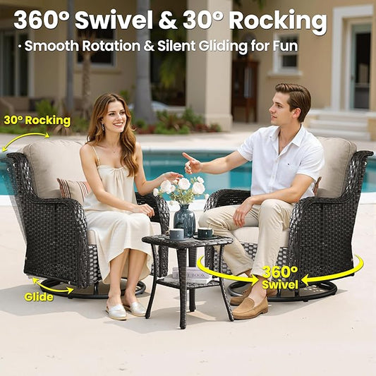 ovios 7 Pieces Patio Furniture Set, Outdoor Wicker Sofa Couch with Swivel Chairs Solar Lights Table, All Weather High Back Modern Conversation Sets, Grey Rattan, Grey