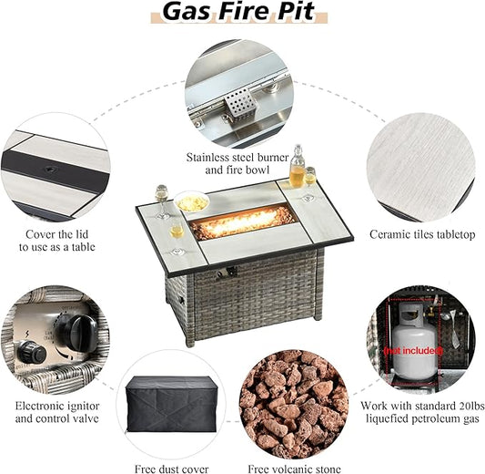 HOOOWOOO Modular Patio Outdoor Sectional Furniture Set with Gas Propane Fire Pit Table,7 Piece Wicker Conversation Sofa Set,Out Door Couch Set with Wide Arm Outside(Beige)