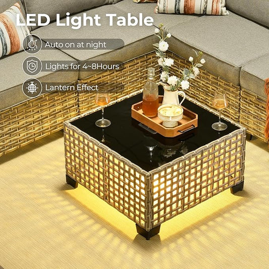 HOOOWOOO Outdoor Sectional Patio Furniture Set,7 Pieces Wicker Conversation Sets,Extra Deep Out Door Sofa Outside Furniture Couch with Ottoman,Beige