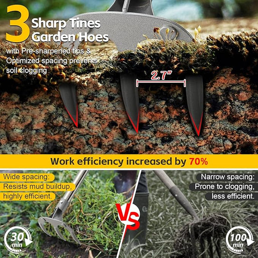 Hand Rake Long Handle - 74" Cultivator Weeding Rakes for Lifts Out Deep-Rooted Grass, 3-Tine Claw Rakes Heavy Duty Carbon Steel with D Grip for Digging Potato,Carrots,Loosens Soil