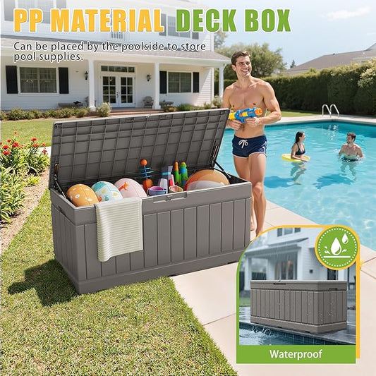 Domi Outdoor Storage Deck Box 120 Gallon, Outdoor Deck Box with Waterproof Storage Bag for Outside Cushions, Garden Tools and Pools Equipment, Gray