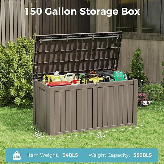 160 Gallon Outdoor Storage Deck Box Waterproof, Large Patio Storage Bin for Outside Cushions, Throw Pillows, Garden Tools, Lockable (Dark Brown)