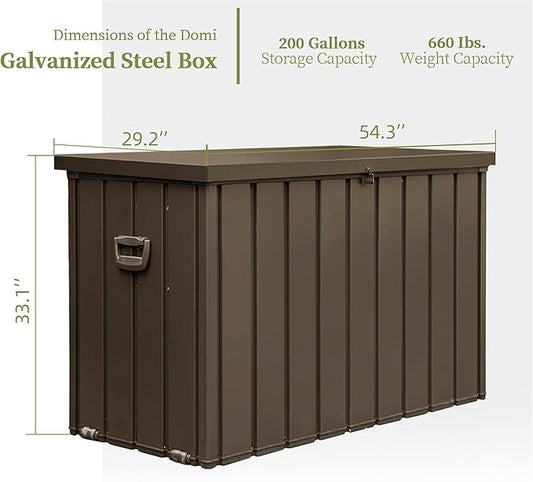 200 Gallon Outdoor Storage Deck Box Waterproof, Large Patio Storage Bin for Outside Cushions, Throw Pillows, Garden Tools, Lockable (Dark Brown)