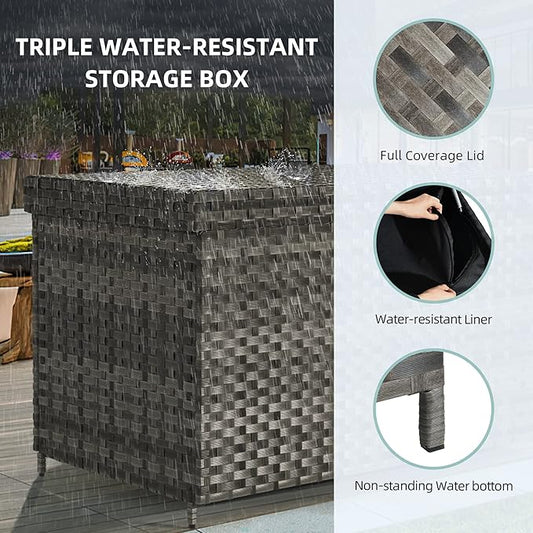 YITAHOME 230 Gallon XXL Deck Box, All-Weather Wicker Outdoor Storage Box, PE Rattan Storage Bin for Patio Furniture, Outdoor Cushions, Pool Storage and Garden Tools - Grey