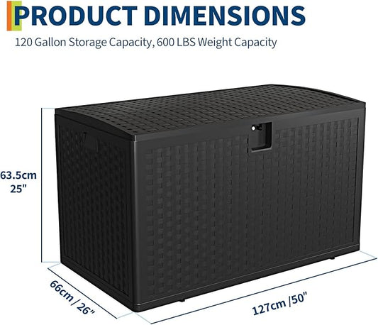 120 Gallon Outdoor Waterproof Storage Box Lockable Outdoor Storage Boxes Deck Storage Boxes for Package Delivery Deck Boxes for Patio Furniture, Garden, Tools - Rattan Black