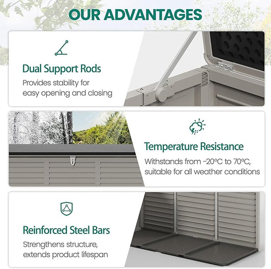 Outdoor Storage Box, 180 Gallon Deck Boxes Outdoor Waterproof, Resin Waterproof Deck Box for Patio Furniture Outdoor Cushions Garden Tools and Pool Storage (Light Brown,180 Gallon-)