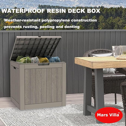 Mars Villa 31 Gallon Deck Box, Outdoor Storage Box Waterproof, Outside Resin Storage Bin for Outdoor Patio Furniture Cushions, Pool Supplies, Garden Tools, UV-Resistant and Weatherproof, Light Brown