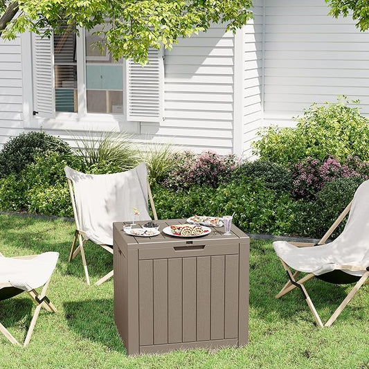 31 Gallon Outdoor Storage Box - Waterproof Resin Deck Box for Indoor & Outdoor Use, Lockable & UV Resistant Storage Bin for Package Delivery, Patio Cushions, Gardening Tools - Grey