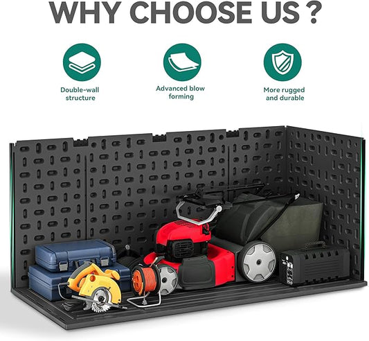 150 Gallon Outdoor Deck Box,Storage Lockable Waterproof Patio Furniture,Garden Tools,Cushions,Pool Accessories Outside Storage Resin Box(Black)