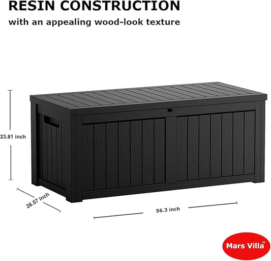Mars Villa 119 Gallon Deck Box, Large Resin Outdoor Storage Box, Waterproof Storage Bin with Lockable Lid for Patio Furniture Cushions, Pool Supplies, Garden Tools, Weatherproof, Black