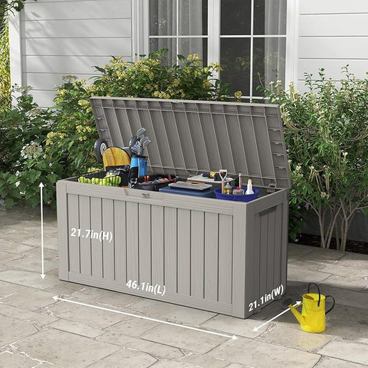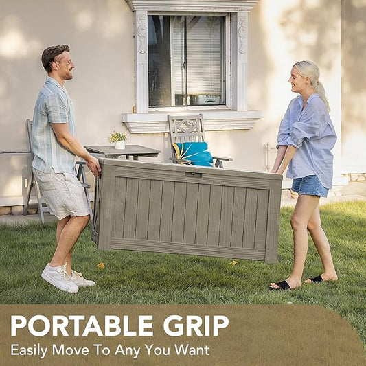 260 Gallon Outdoor Deck Box,Storage Lockable Waterproof Patio Furniture,Garden Tools,Cushions,Pool Accessories Outside Storage Resin Box(Grey)