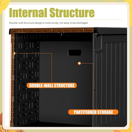 Devoko 240 Gallon Double-Wall Deck Box with Divider, Side Handles, Resin Outdoor Large Storage Box Waterproof and Lockable for Patio Furniture, Garden, Pool (Black)
