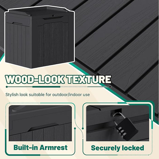 28 Gallon Outdoor Deck Box,Storage Lockable Waterproof Patio Furniture,Garden Tools,Cushions,Pool Accessories Outside Storage Resin Box(Black)