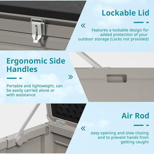 180 Gallon Outdoor Deck Box,Storage Lockable Waterproof Patio Furniture,Garden Tools,Cushions,Pool Accessories Outside Storage Resin Box(Grey)